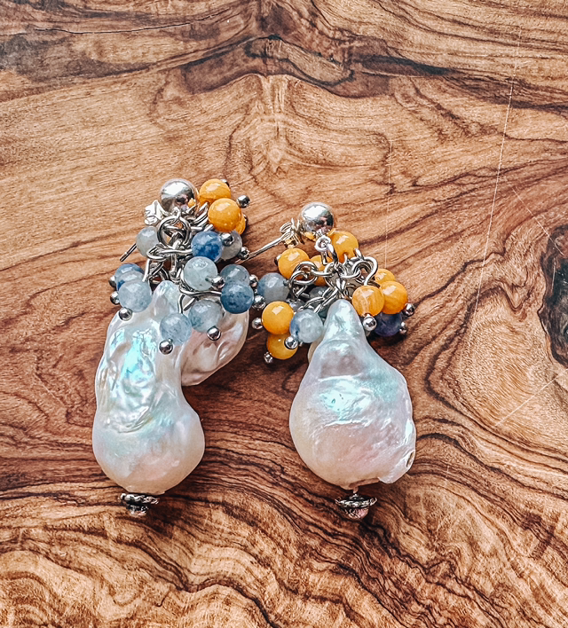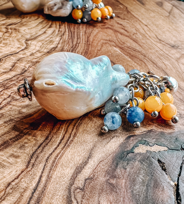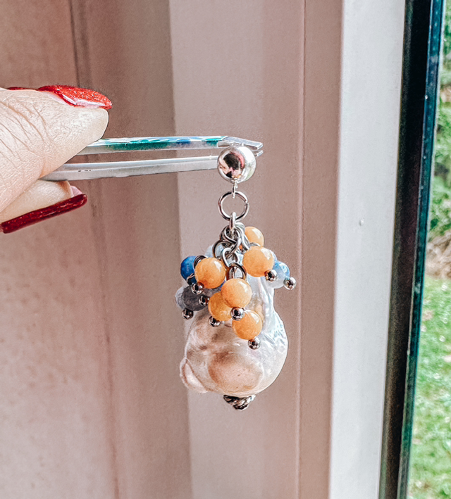 ✨Verziert mit zarten Miniperlen aus orangefarbenem und blauem Aventurin – harmonische Farbkombination.