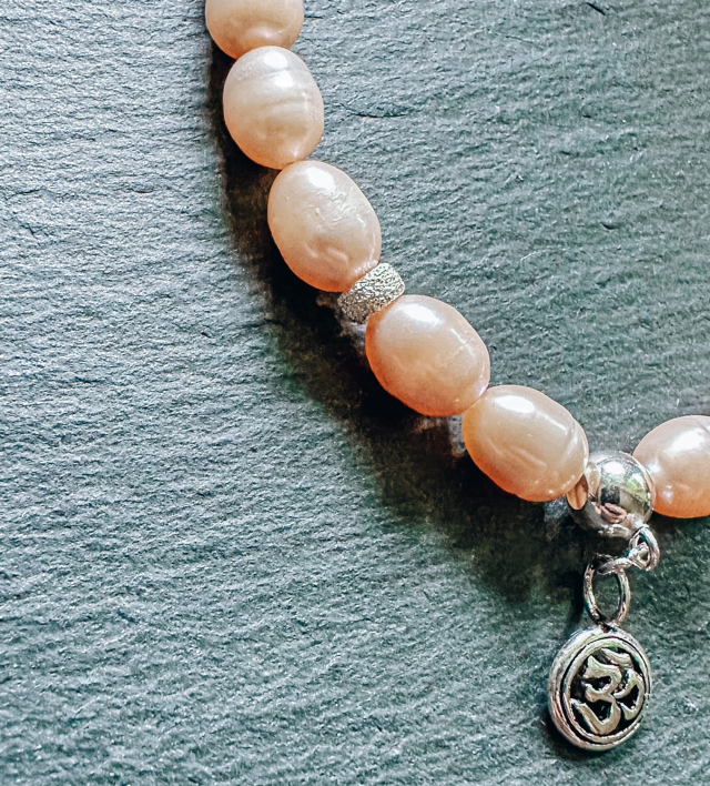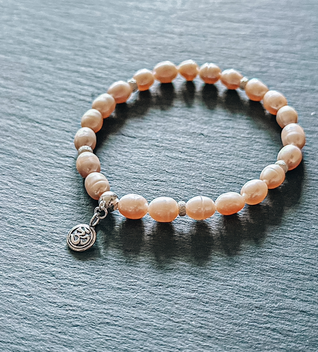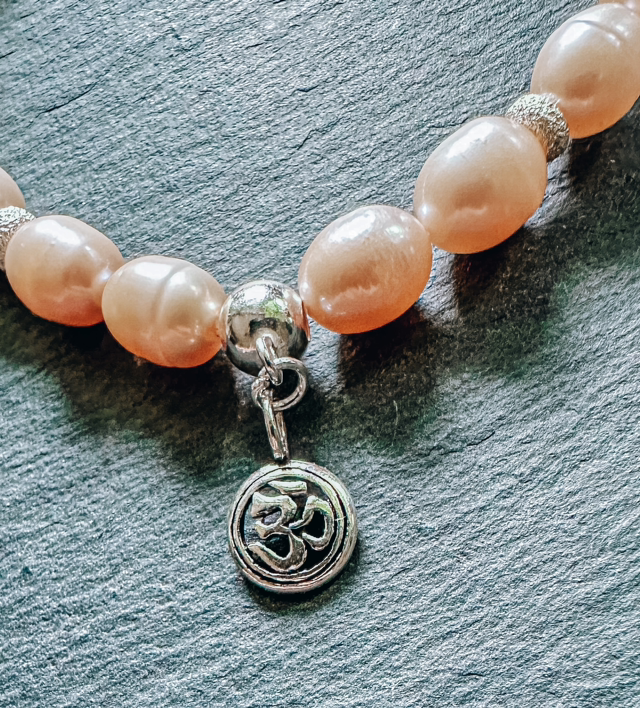 Phu-Quoc-Süsswasserzuchtperlenarmband mit Silbernem Om-Zeichen-Anhänger - Eine Verbindung zur inneren Harmonie